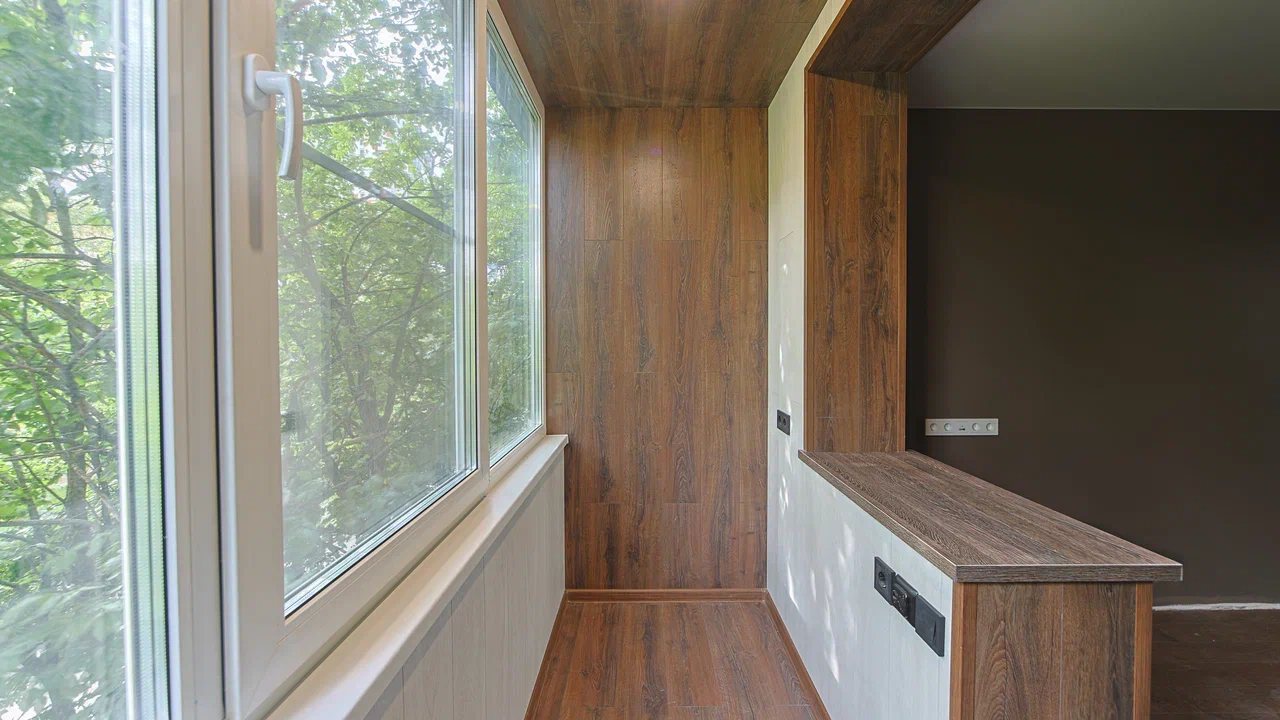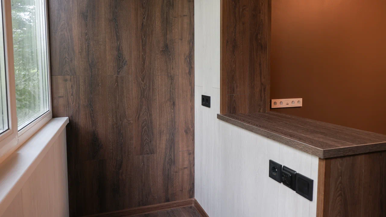 Компания Балкония реализовала проект по объединению и созданию теплой лоджии в квартире жилого дома серии П-55. Основные этапы работ включали следующие мероприятия: 1. Утепление выполнено по инновационной технологии «Термос», обеспечивающей эффективное сохранение тепла и комфорт внутри помещения. 2.Для отделки была выбрана комбинация различных видов ламината для создания контраста в цветовом оформлении. 3. Установлены современные окна с профилем Рехау Grazio 70, оснащённые качественной немецкой фурнитурой ROTO. Это обеспечивает высокую теплоизоляцию и звукоизоляцию пространства. 4. Осуществлена разводка электропроводки, установлена необходимая электроразводка с розетками, светильниками и выключателями, обеспечивающими удобство эксплуатации новой зоны. Кроме всего прочего, компания установила тёплые инфракрасные полы — приятный бонус, который добавил комфорта и повысил уровень уютности нового пространства.
