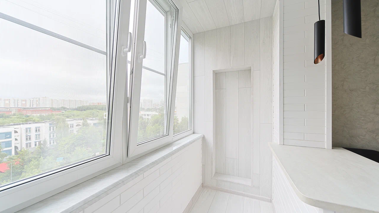 Надежное остекление: Рехау Gracio 70 профиль, фурнитура ROTO. Дизайнерское решение:организация дополнительной ниши для хранения.
