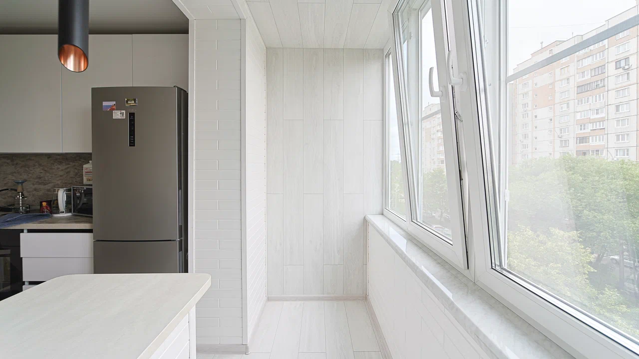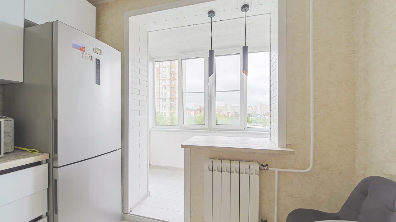 Увеличение рабочего пространства засчет объединения балкона с кухней.