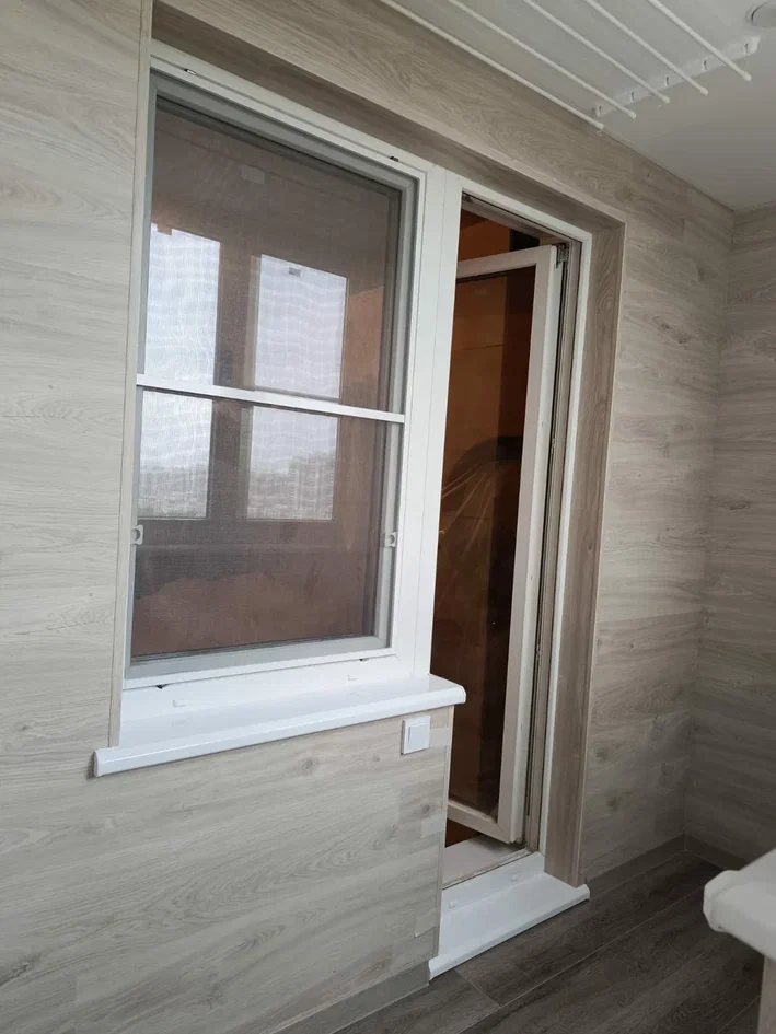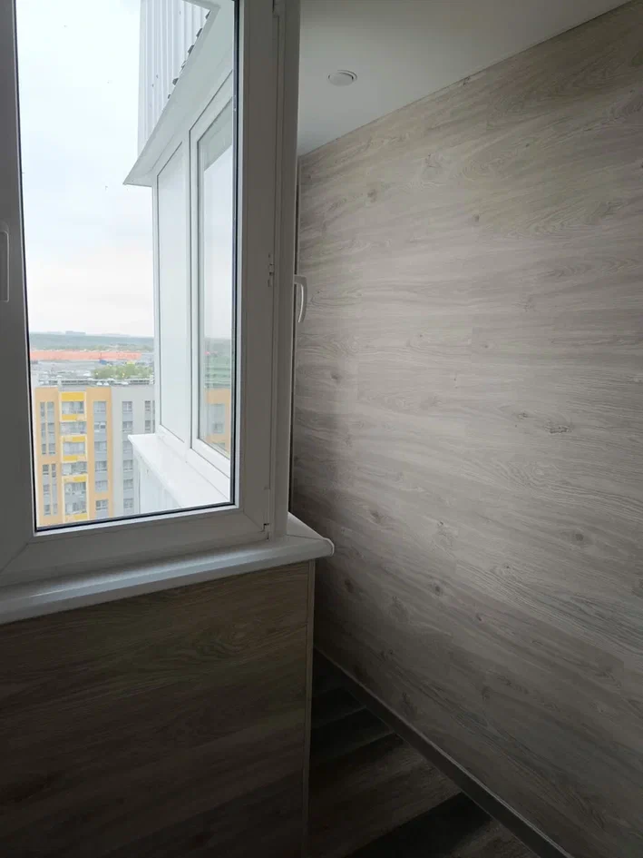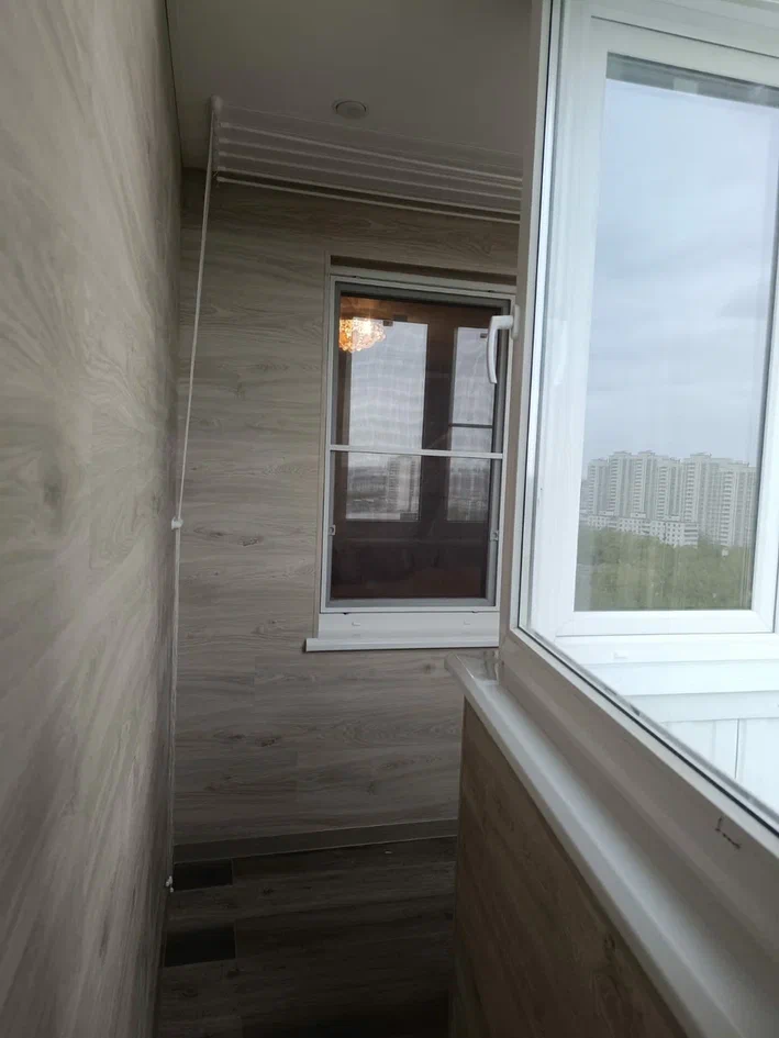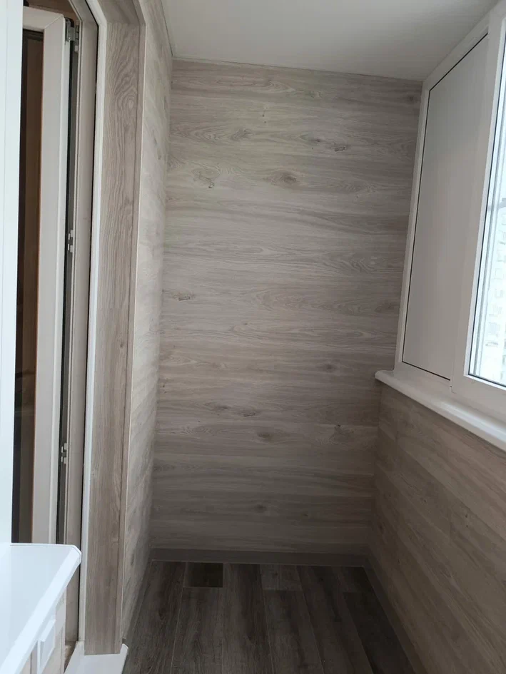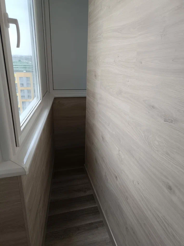 Особенностью данного ремонта является полная отделка нестандартной формы лоджии («сапожок») современными материалами, такими как кварцвинил, способствующими созданию функционального и красивого пространства. Выполненные работы: Отделка стен: Использована современная декоративная отделка стен — высококачественная плитка из кварцвинила, обладающая повышенной износостойкостью и влагостойкостью.
