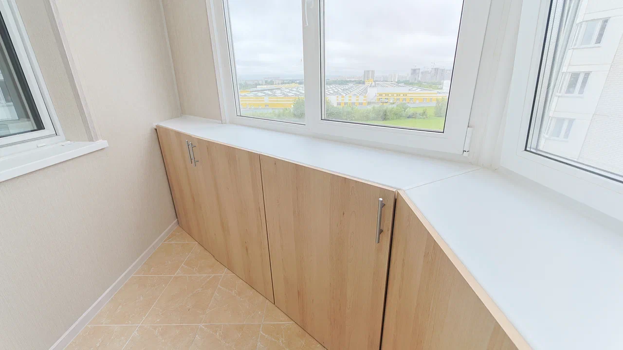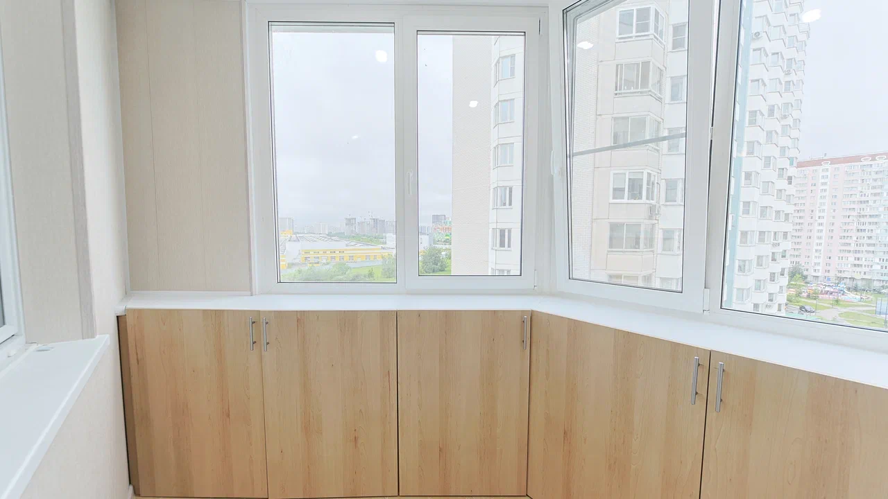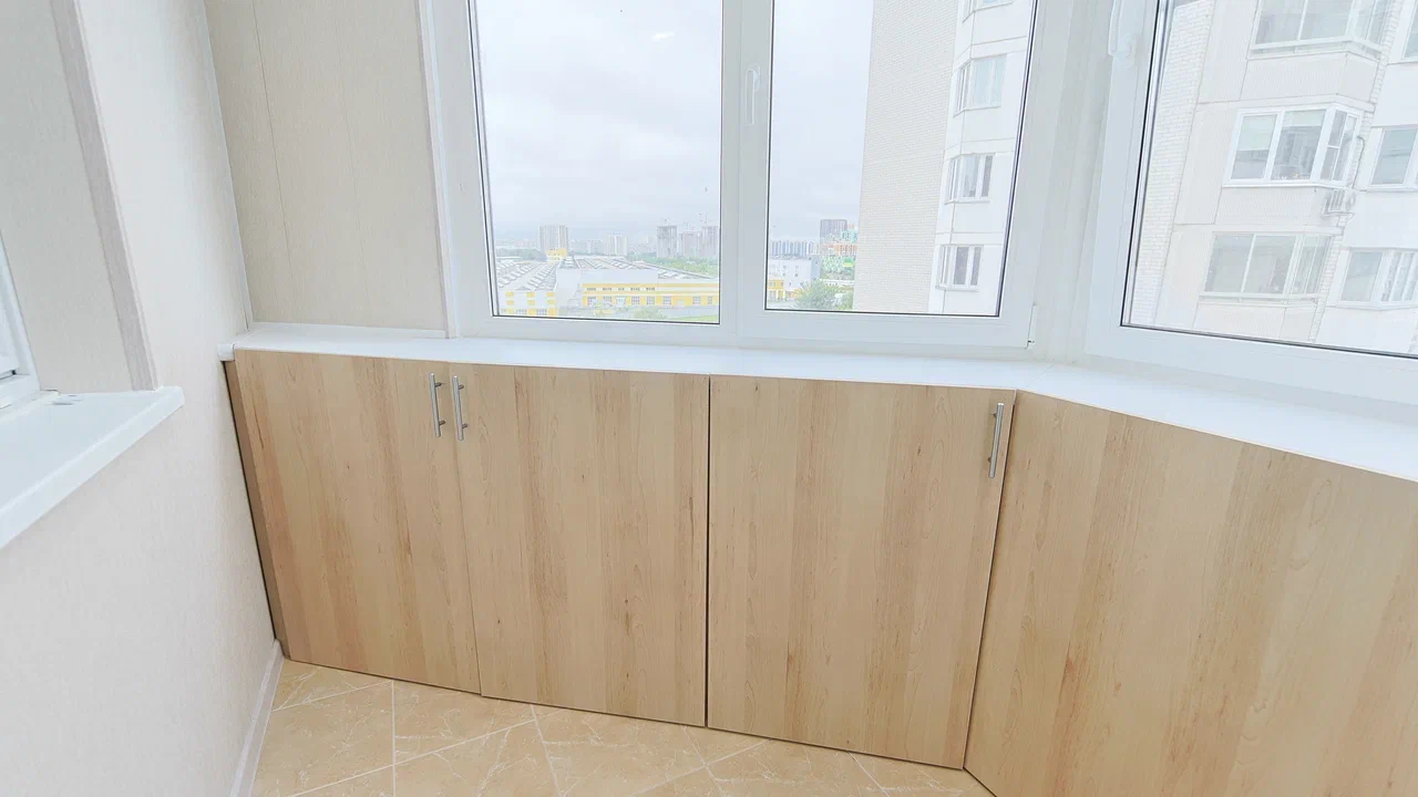 Оригинальное решение: встроенные шкафы под подоконник..Сроки: 1 день-демонта/монтаж окон, 5 дней - обшивка балкона.