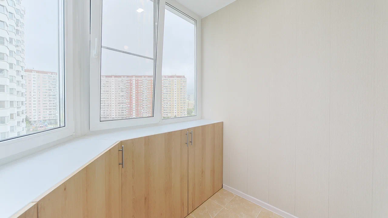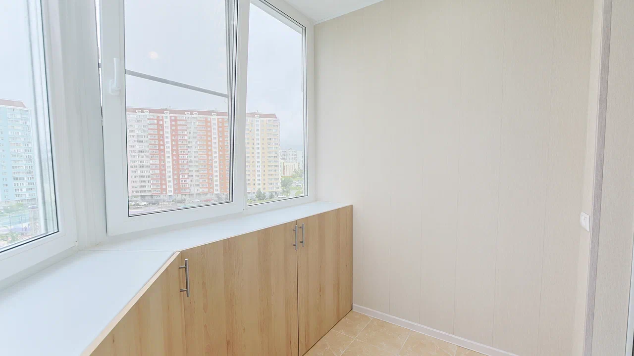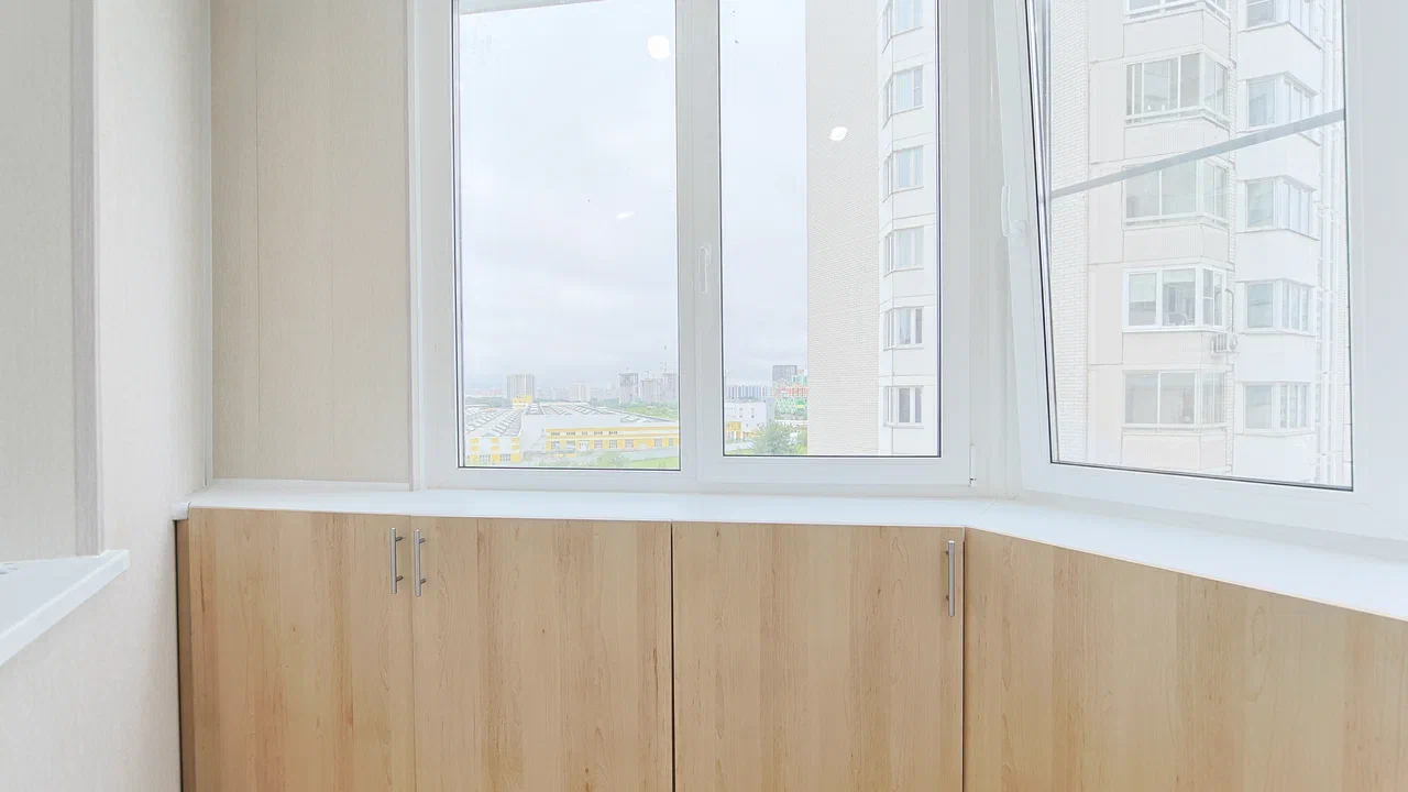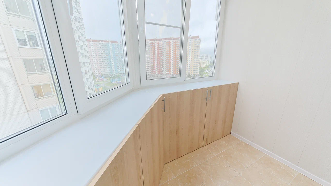 Оригинальное решение: встроенные шкафы под подоконник..Сроки: 1 день-демонта/монтаж окон, 5 дней - обшивка балкона.