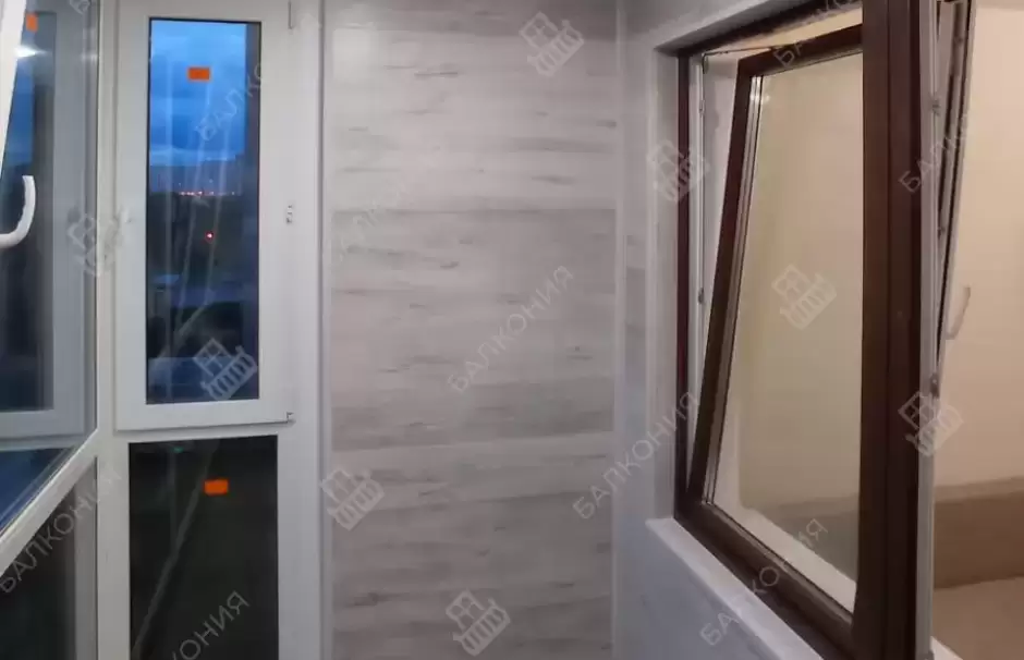 В данном объекте было выполнено решение по отделке балкона. На место балконного блока установлены новые окна, что дало больше тепла в квартире. Балкон остеклен панорамными окнами с мультифункциональным стеклопакетом. Стены обшиты ПВХ. Выведено и разведено электричество.