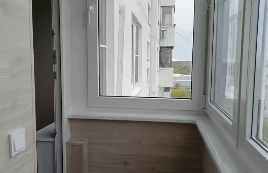 Выполнен капитальный ремонт Г-образной лоджии в жилом комплексе по адресу: Барвихинская улица, дом 8 корпус 2, серия дома П-3. Основные работы: Отделка стен: стены облицованы качественным кварцвинилом, устойчивым к повреждениям и влаге.