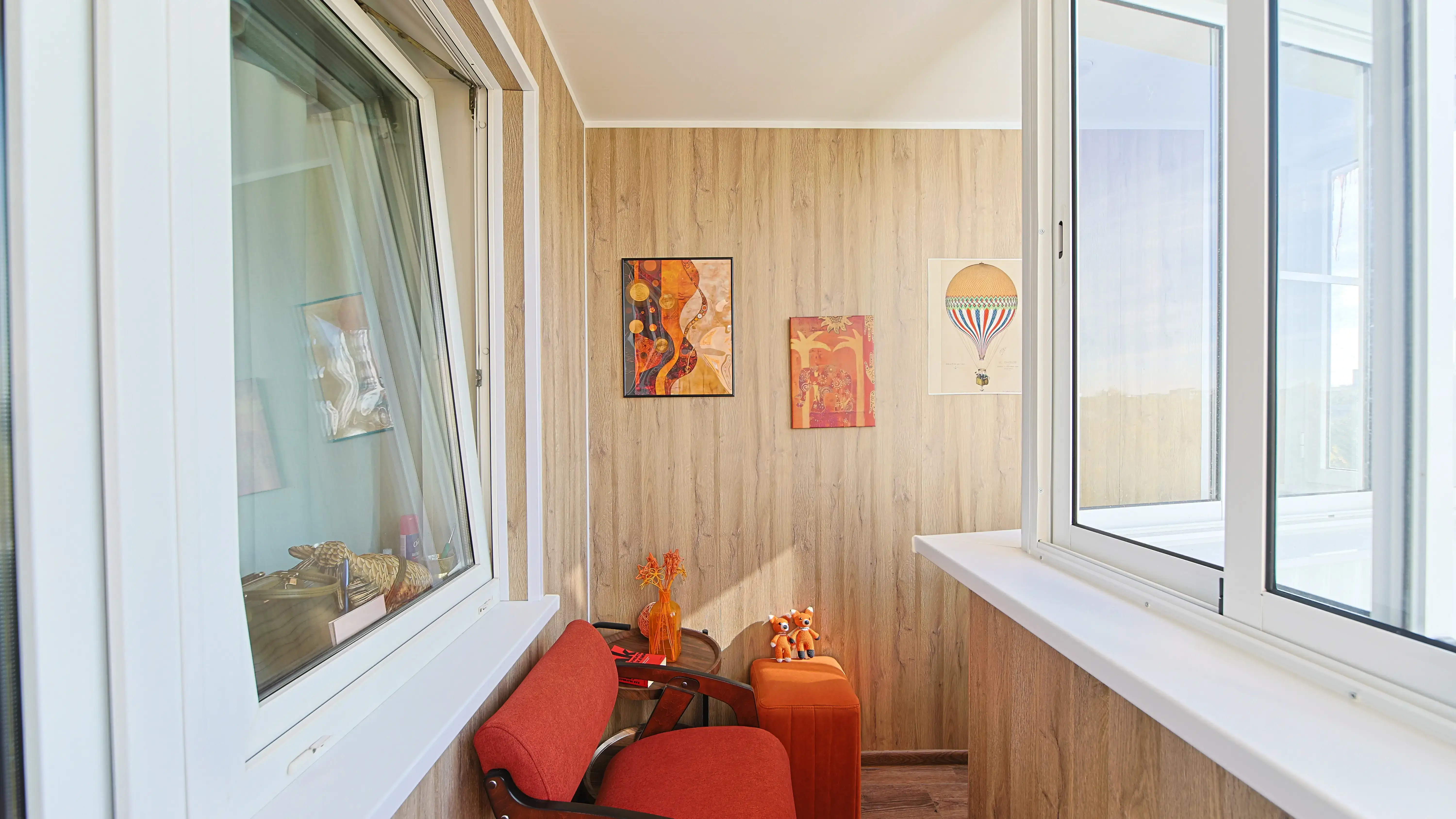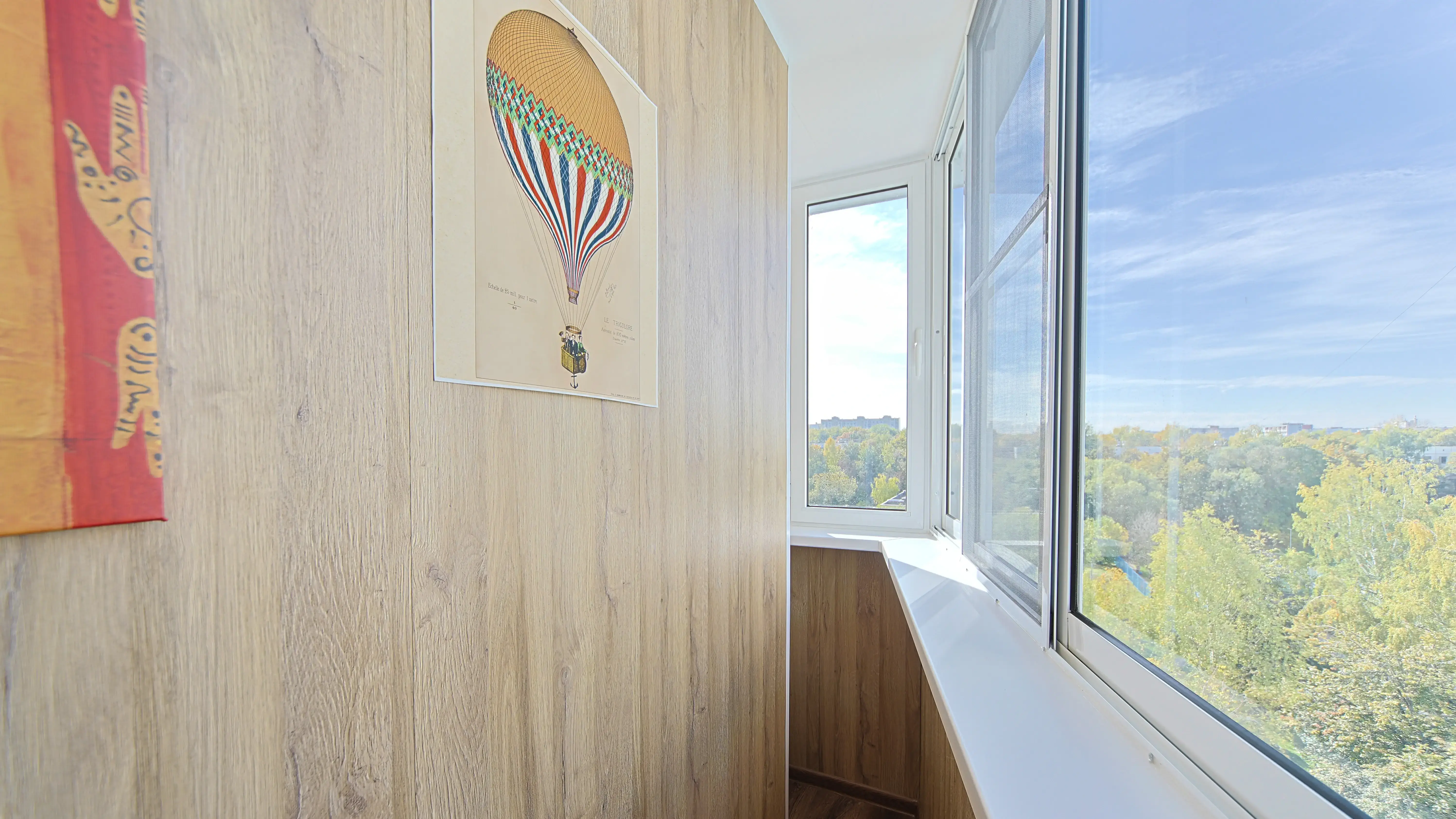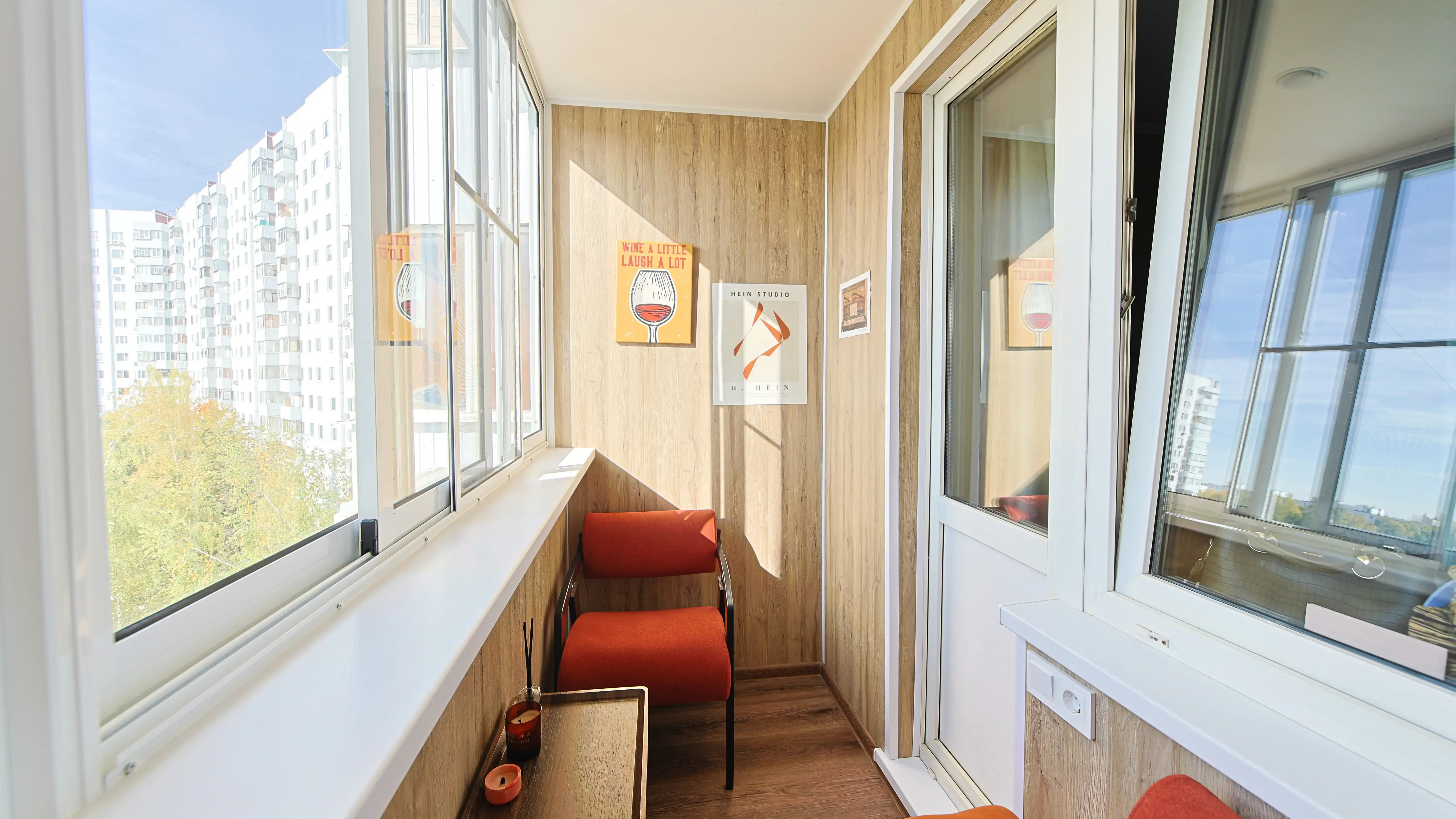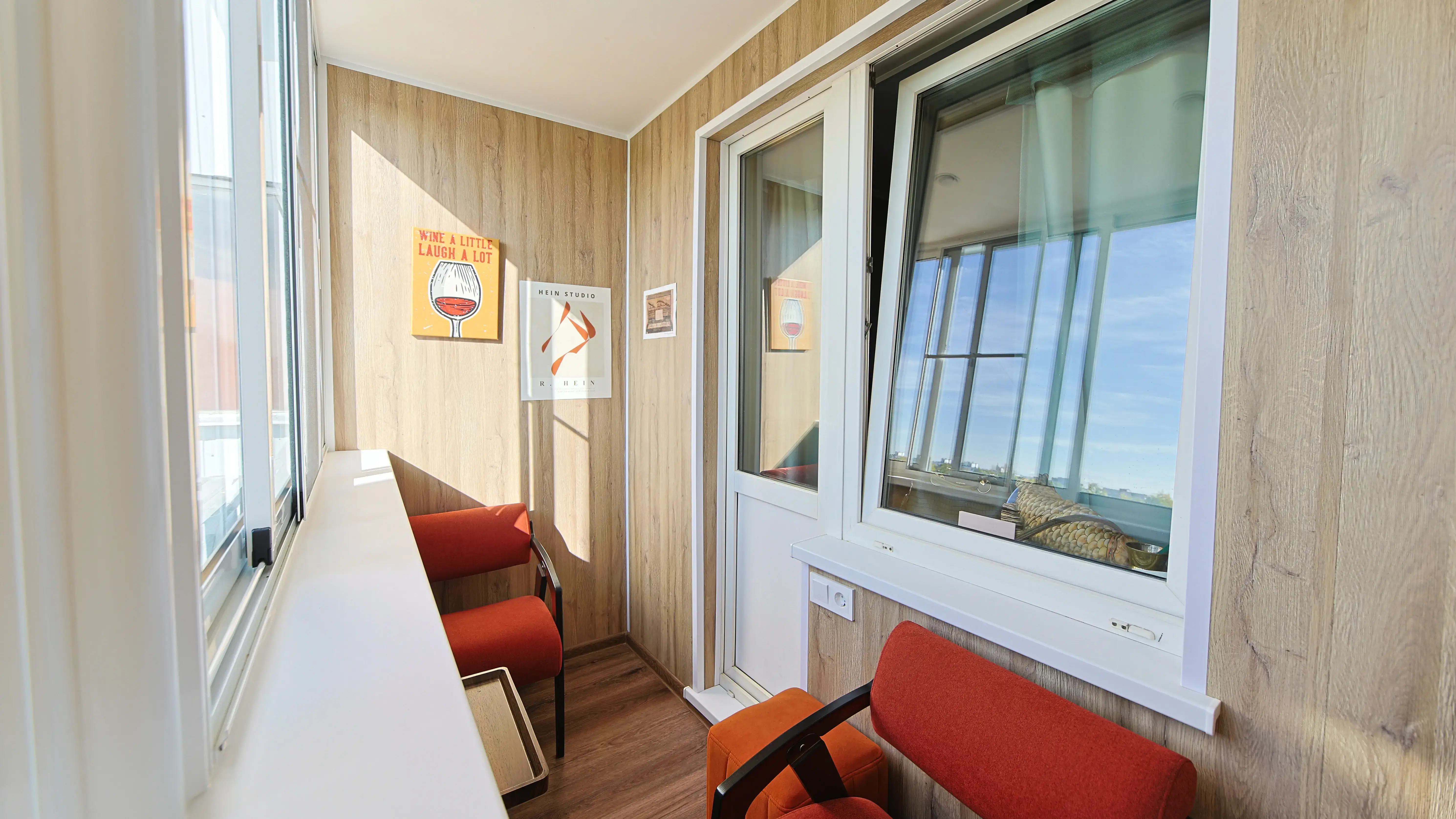 Дополнительно: облагорожен балконный блок — выполнены аккуратные откосы, установлен подоконник и порожек. Сложная конфигурация с большим количеством внутренних и наружных углов выведена в «ноль» с точной подгонкой всех элементов.