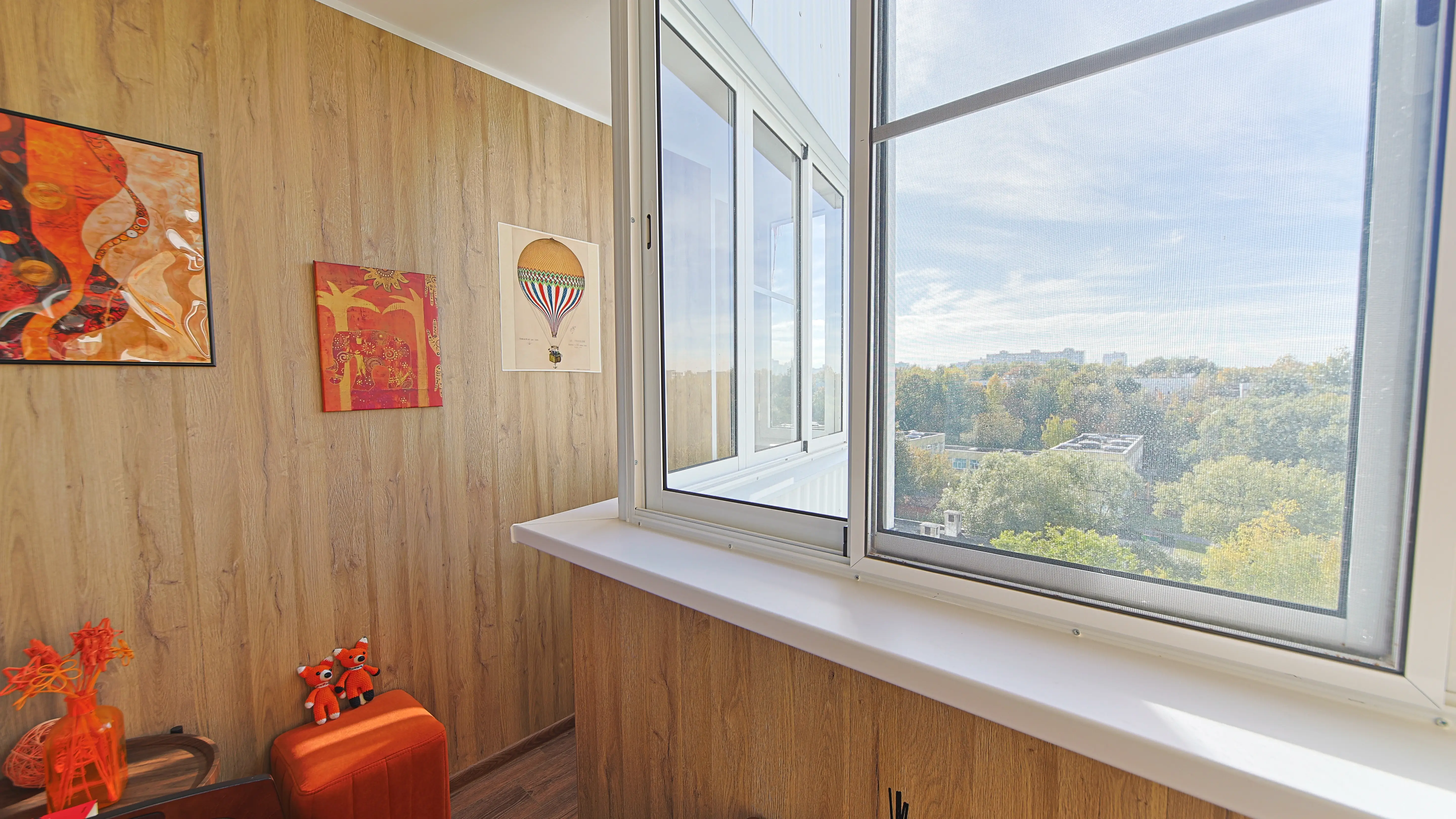 Основные этапы работ: выполнено холодное остекление Provedal — по три створки на каждый пролёт. В местах, где раздвижные системы были невозможны, установлены классические открывающиеся створки. Парапет утеплён пеноплексом для снижения шума и повышения комфорта. Устранена щель около 10 см между плитой и парапетом. Внешний блок кондиционера до начала работ вынесен наружу.